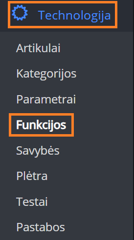 Dabar galite pamatyti funkcijų sąrašą: